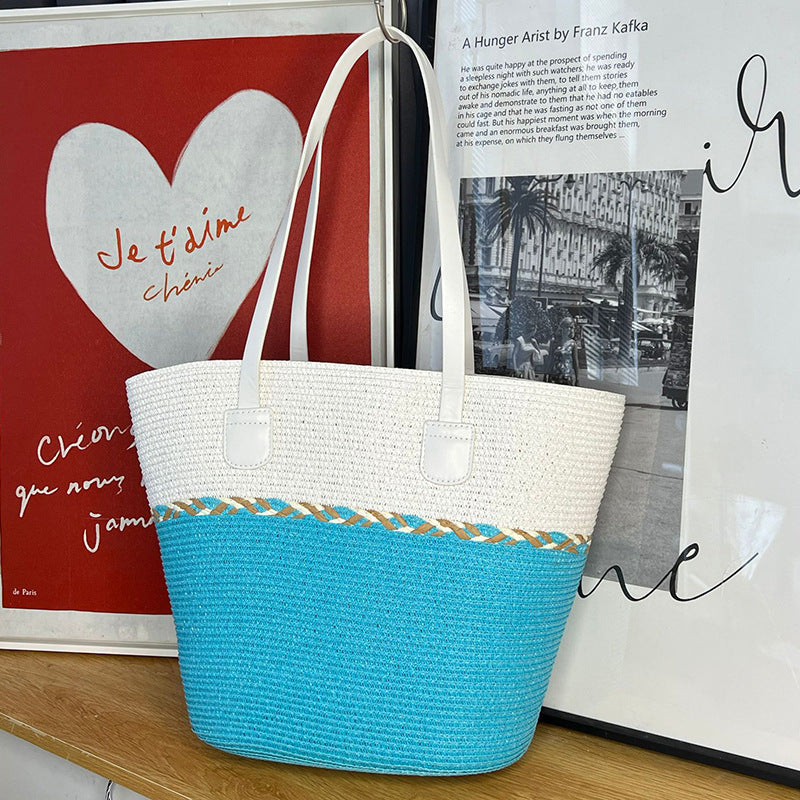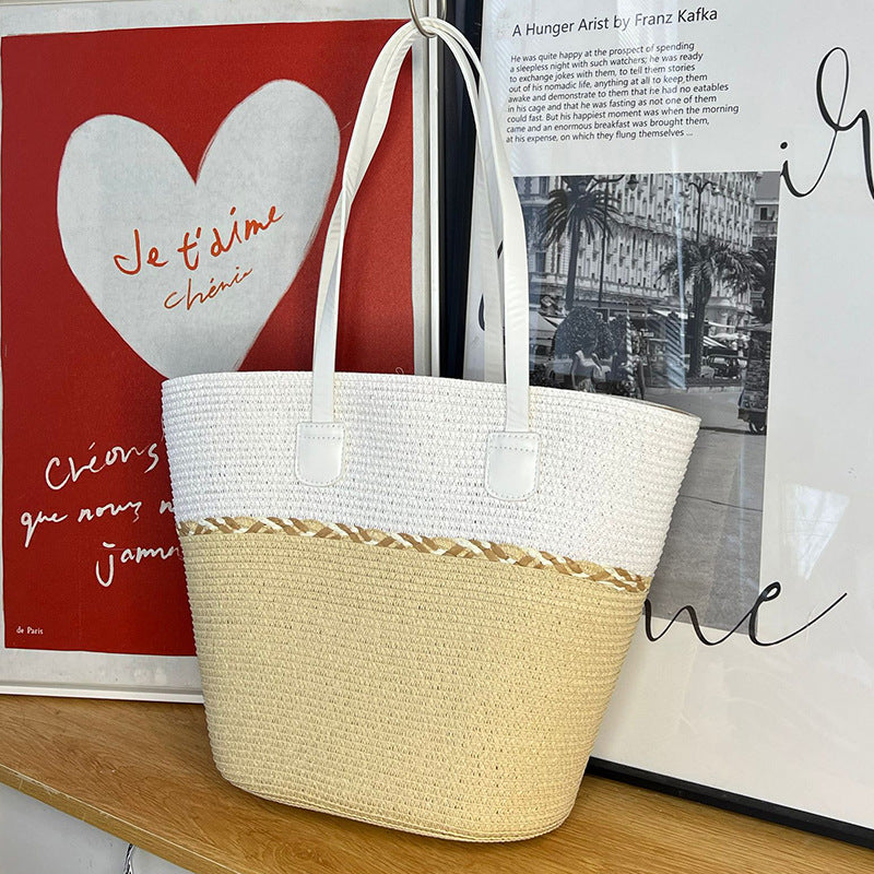 Straw Bag and Hat Set for Women, Beach Vacation, Versatile Sun Protection Wide Brim Hat, Commute Travel Large Capacity Tote Bag